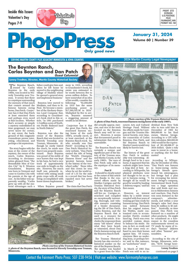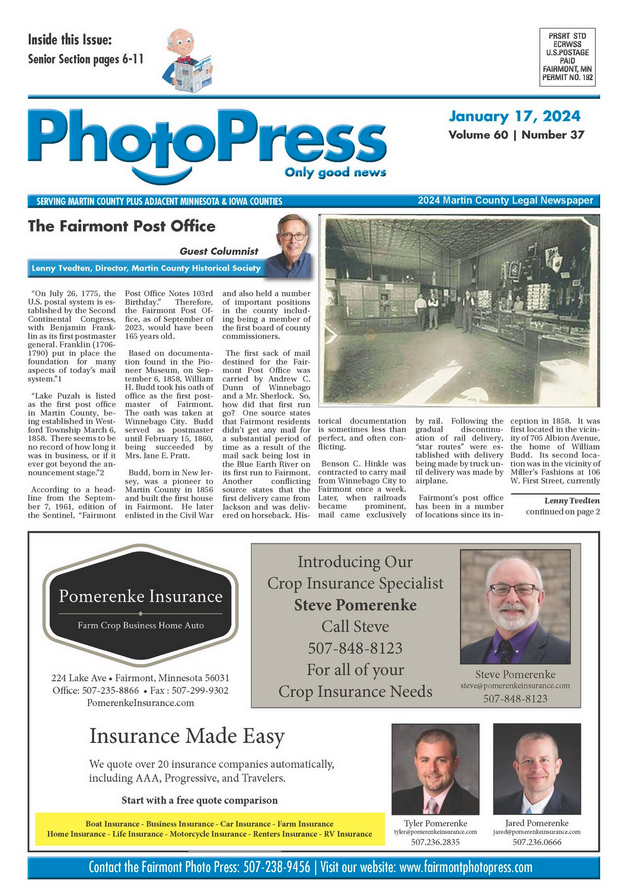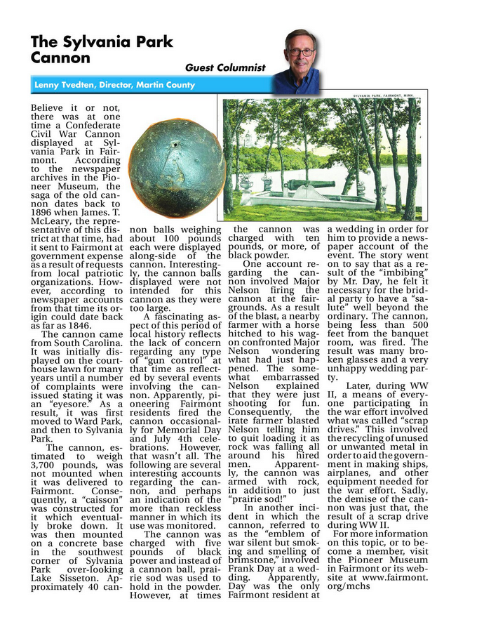 Throughout the years, MCHS Executive Director Lenny Tvedten has shared his passion for history by writing a regular column for our local papers. Here, you’ll find those articles as featured in the Fairmont Photo Press. Click on each title below to read the full story!